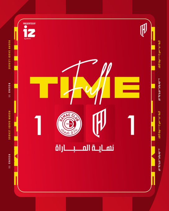 في دوري روشن السعودي بعد أن انتهت مواجهتهما 1ـ1 ضمن الجولة الـ11