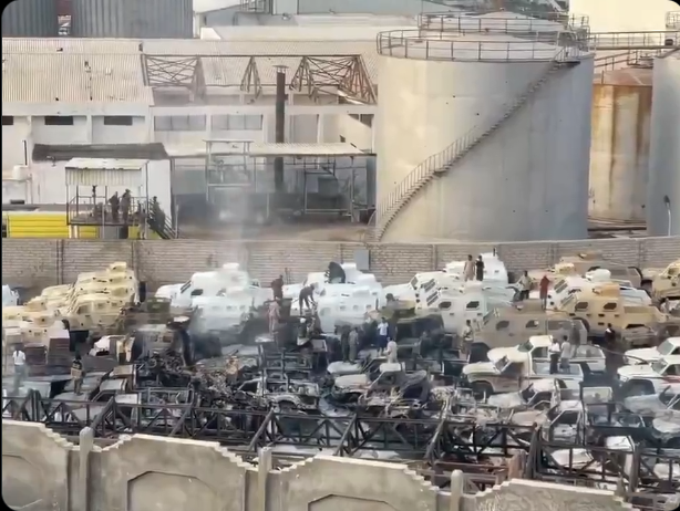 🔴🔴 عاجل : مشاهد الدمار داخل #ميناء_المكلا بعد الضربة الأخيرة التي وقعت هذا الصباح، حيث تضررت العديد من المركبات العسكرية.
