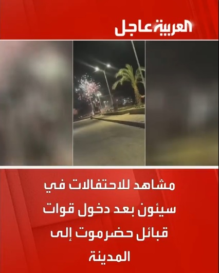 مشاهد للاحتفالات في سيئون بعد دخول قوات قبائل حضرموت إلى المدينة#اليمن #قناة_العربية pic.twitter.com/exS9M1Yolv