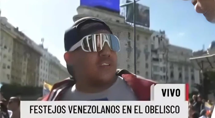 وثق مقطع فيديو متداول، شابًا فنزويليًا يعبر عن سعادته بخبر اعتقال الرئيس الفنزويلي نيكولاس مادورو، وذلك خلال تجمع لعدد من الفنزويليين في أحد الميادين بالعاصمة الأرجنتينية بوينس آيرس.وقال الشاب خلال حديثه: “أولئك الذين يقولون إن الولايات المتحدة مهتمة فقط بنفطنا، أسألكم، ما رأيكم فيما أراده الروس والصينيون هنا؟ وصفة الأريبا؟”.وكان الرئيس الأمريكي دونالد ترامب قد أعلن أن القوات الأمريكية نفذت عملية عسكرية واسعة داخل فنزويلا، وصفها بأنها «هجوم لم يشهد العالم مثله منذ الحرب العالمية الثانية»، بهدف اعتقال الرئيس الفنزويلي نيكولاس مادورو وزوجته وتقديمهما للعدالة الأمريكية.