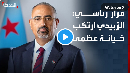 قرار رئاسي يمني: عيدروس الزبيدي ارتكب خيانة عظمى.. واستغل القضية الجنوبية لارتكاب انتهاكات#عيدروس الزبيدي#اليمن#قناة_الحدث pic.twitter.com/q9Kmht2Naj