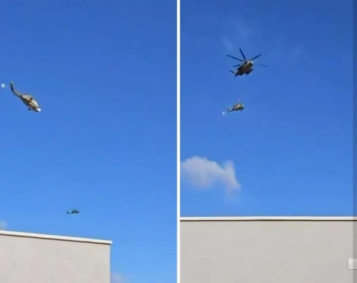 الإسرائيلية من طراز «بلاك هوك» أثناء عملية نقل جوي، ما أدى إلى تحطمها بالكامل عقب ارتطامها بالأرض.انقطاع الأوتار وبحسب ما أبان المقطع، كانت المروحية تُنقل جوًا بواسطة