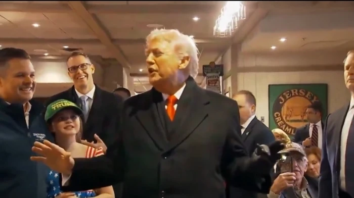 قاطع الرئيس الأميركي دونالد ترامب أحد المراسلين، خلال حديثه مع ناخبي ولاية آيوا، ليعرّفهم بالمراسلة بطريقة ساخرة.