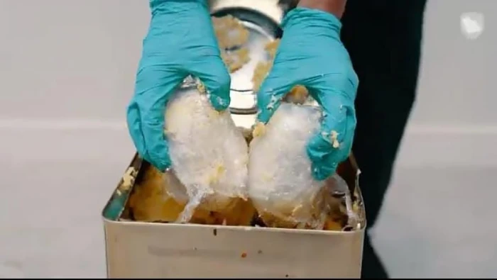 عُثر عليها مخبأة داخل مواد غذائية.. بالفيديو.. إحباط تهريب أكثر من 269 ألف حبة من الإمفيتامين المخدر في منفذ الحديثة
