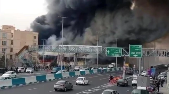 بالفيديو.. اندلاع حريق هائل بمركز تجاري في طهران