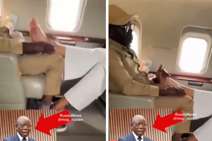 بالفيديو: ظهور عضو برلماني نيجيري 70 عاما مشهور بدعمه للفقراء يدلك قدم فتاة مؤثرة على متن طائرة خاصة