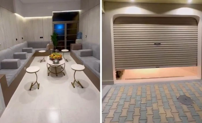 صحيفة المرصد: وثق مقطع فيديو متداول، قيام شخص بتحويل موقف سيارته إلى مجلس لاستقبال الضيوف.وأظهر الفيديو، المواطن وهو يفتح باب موقف السيارة، حيث ظهر مجلس ضيافة أنيق تم تجهيزه بطريقة مرتبة.جلسات متقابلةوظهر في مقدمة المجلس، جلسات متقابلة بلون رمادي فاتح مع مساند، موزعة بشكل متناسق، وجدران مكسوة بألواح بلون رخامي فاتح.مغسلة وكاونترووُضع ركن مخصص للمغسلة وكاونتر جانبي مجهز بغلاية وأدوات تقديم الضيافة وغيرها من الأدوات.طاولة للضيافة وكان هناك طاولات دائرية صغيرة بسطح أبيض وقواعد معدنية ذهبية، وفي المنتصف طاولة رئيسية عليها فواكه وأواني ضيافة.