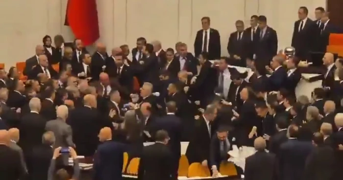بالفيديو: شجار داخل البرلمان التركي في محاولة لمنع وزير العدل الجديد من أداء اليمين الدستورية