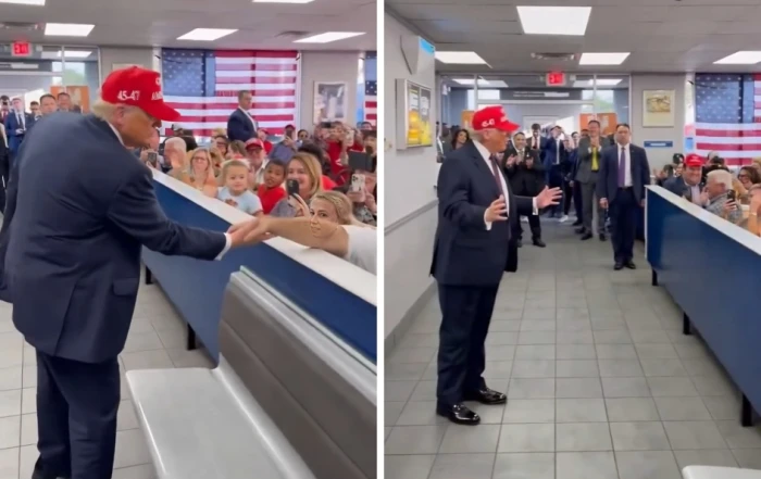 بالفيديو: ترامب يطلب وجبات هامبرغر لجميع الزبائن في مطعم " واتابيرغر " على حسابه الشخصي
