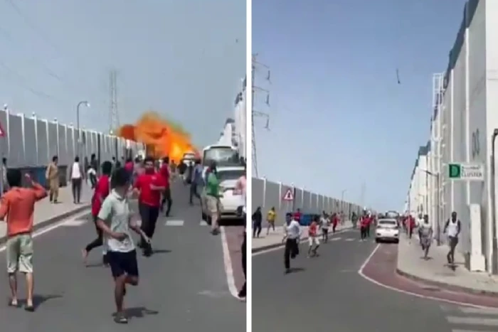 بالفيديو: لحظة سقوط الصاروخ الإيراني الذي تم اعتراضه في قطر وهروب العمالة للاحتماء