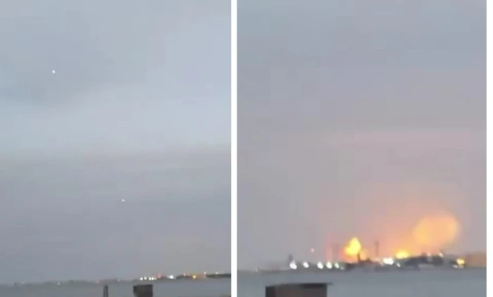 لحظة سقوط صاروخ باليستي إيراني على مصفاة نفط في البحرين