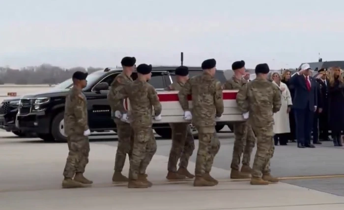 بالفيديو.. ترامب يستقبل جثامين 6 جنود أميركيين قتلوا في الحرب على إيران