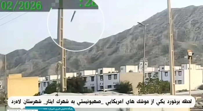 Read Moreصحيفة المرصد: وثق مقطع فيديو، لحظة سقوط صاروخ أمريكي على منطقة سكنية في مدينة لامرد جنوب إيران.وأظهر الفيديو، وقوع انفجارات متتالية على المنطقة، وأعقبها تساقط شظايا صاروخية باتجاه المنطقة السكنية، حيث بدت ألسنة النيران وهي تتصاعد من موقع السقوط.وارتفعت سحب كثيفة من الدخان فوق المباني القريبة، مع انتشار قطع الحطام فيما ظهر عدد من الأشخاص وهم يهربون مسرعين من المكان خوفًا من وقوع ضربات أخرى. صحيفة المرصد: وثق مقطع فيديو، لحظة سقوط صاروخ أمريكي على منطقة سكنية في مدينة لامرد جنوب إيران.وأظهر الفيديو، وقوع انفجارات متتالية على المنطقة، وأعقبها تساقط شظايا صاروخية باتجاه المنطقة السكنية، حيث بدت ألسنة النيران وهي تتصاعد من موقع السقوط.وارتفعت سحب كثيفة من الدخان فوق المباني القريبة، مع انتشار قطع الحطام فيما ظهر عدد من الأشخاص وهم يهربون مسرعين من المكان خوفًا من وقوع ضربات أخرى.
